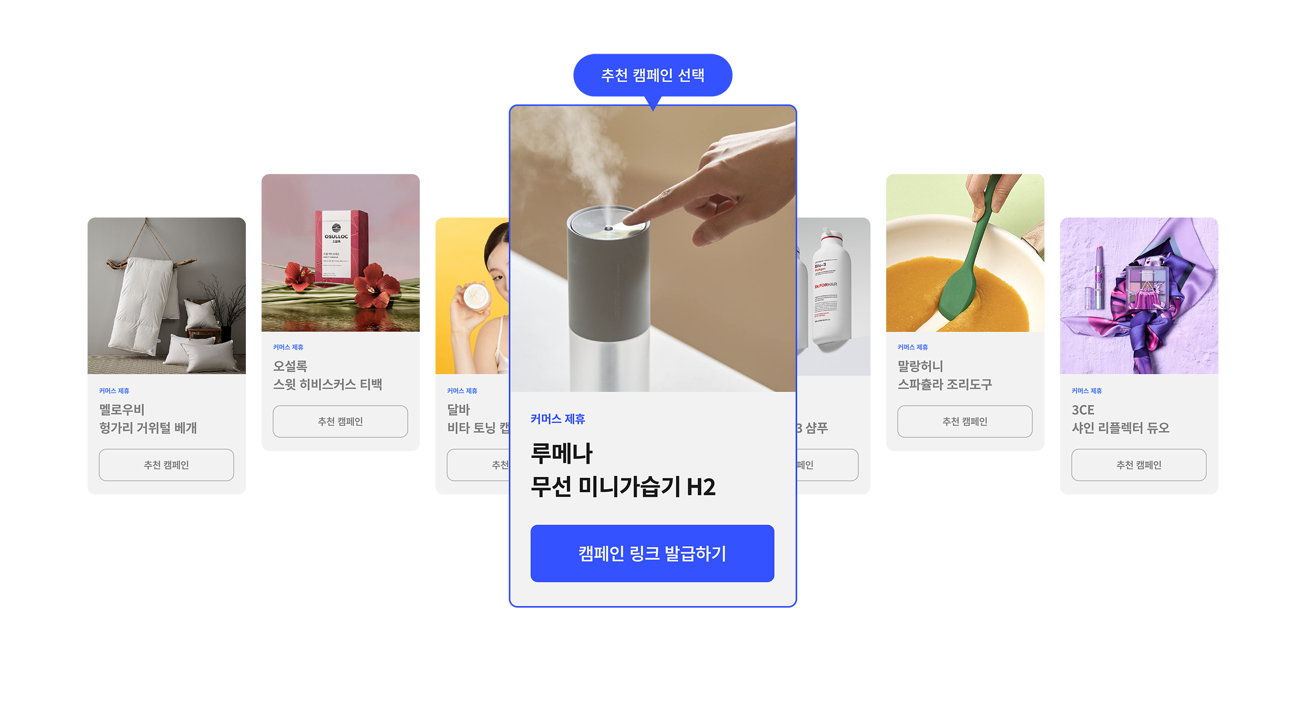 주요 커머스 플랫폼과의 제휴를 통해 파트너에 최적화된 캠페인을 자동으로 연결하고,