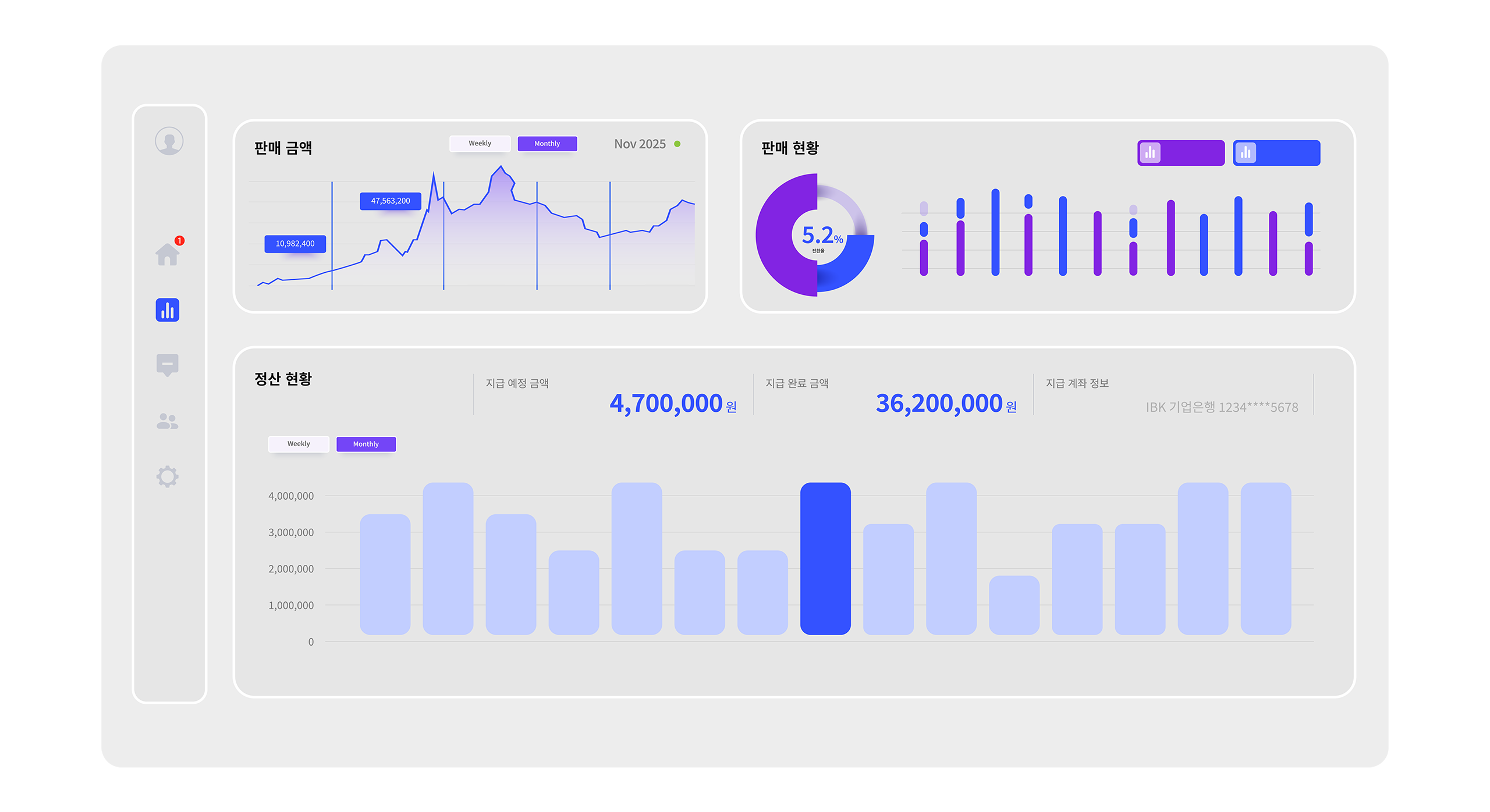 지면별 결제・취소 건수・매출 데이터를 실시간으로 확인할 수 있어 성과 변화에 즉시 대응하고 최적화할 수 있습니다.